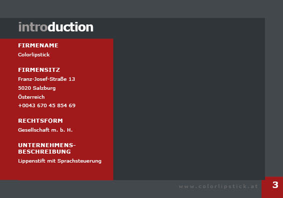 Im 1 Semester haben wir uns intensiv mit der Gründung der eigenen Firma beschäftigt. Unser Colorlipstick benutz intelligente Technologie und Sprachsteuerung. So kann er seine Farbe und seine Hülle individuell an den Kunden anpassen. Er ist für jede Altersgruppe zugänglich.